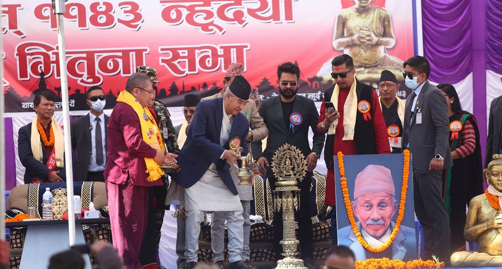नेपाल संम्वत ११४३ को अवसरमा काठमाडौंको वसन्तपुरमा आयोजित बृहत सांस्कृतिक र्याली कार्यक्रमको प्रधानमन्त्रि शेरबहादुर देउवाले उदघाटन गरियो । कार्यक्रम नेपाल संम्वत न्हुदया समारोह समितिको आयोजनामा भएको थियो ।