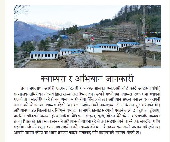 यही उद्देश्य पुरा गर्न एक अर्ब रुपैयाँ संकलन गर्ने लक्ष्यका साथ अभियान अघि बढिसकेको अभियान मुल समितिका सदस्य सचिव एवं क्याम्पस प्रमुख उद्वव शर्माले बताए । प्रस्तुत छ, उनै शर्मासँग यस अभियानबारे एभरेस्ट टाइम्सका लागि नेत्र तामाङले गरेको कुराकानीः