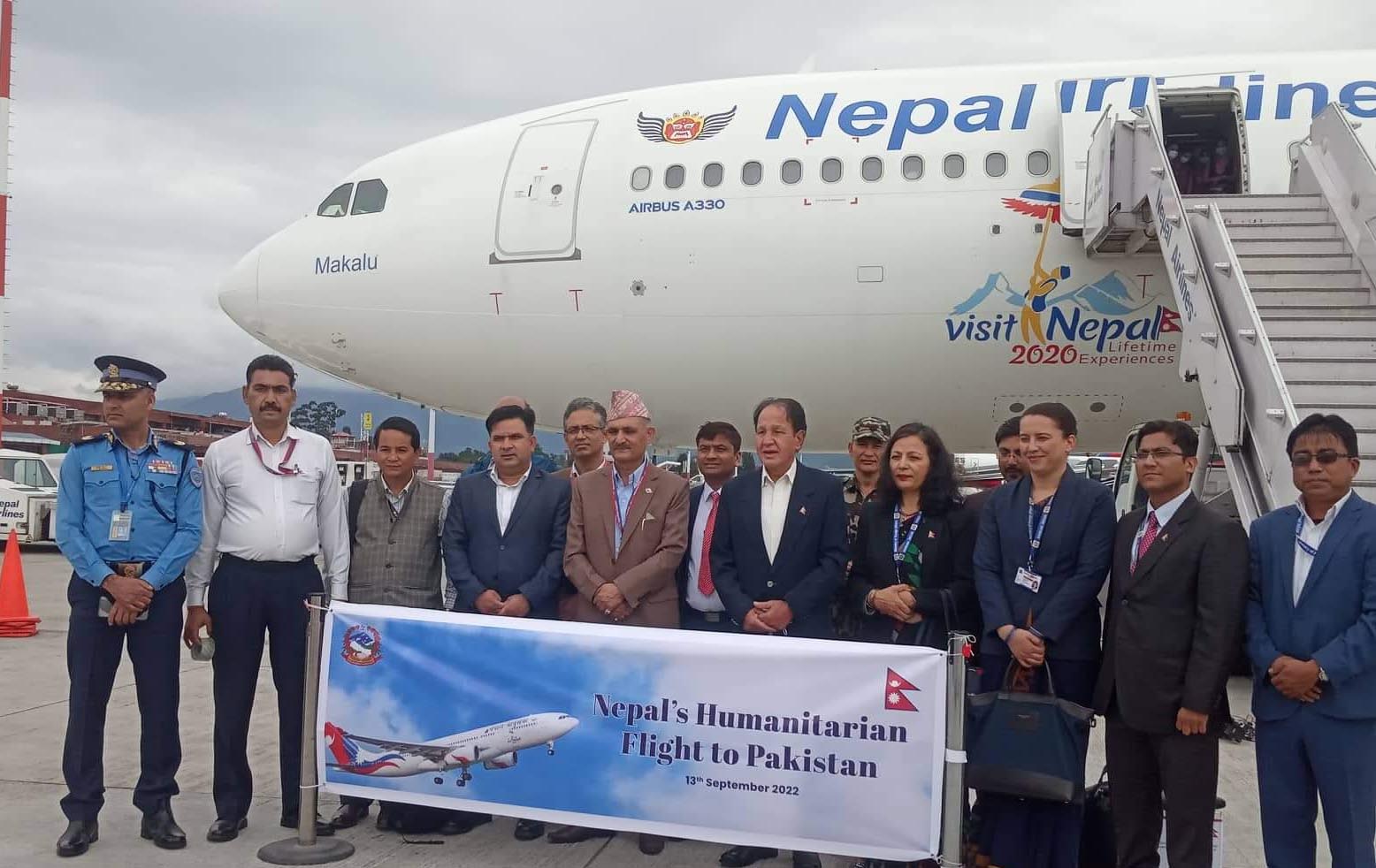 उक्त सहायता सामग्री राष्ट्रिय ध्वजावाहक नेपाल वायुसेवा निगम (नेपाल एयरलाइन्स) को वाइडबडीए तीन सय ३० जहाजमार्फत पाकिस्तानको कराँची सहर पठाइएको हो ।