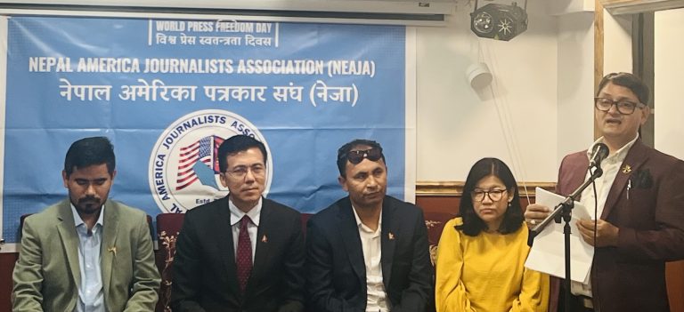 विश्व प्रेस स्वतन्त्रता दिवसको अवसरमा नेपाल अमेरिका पत्रकार संघ (नेजा) ले ‘न्युयोर्कमा सामुदायिक पत्रकारिता र प्रेस स्वतन्त्रता’ विषयमा कार्यक्रमको आयोजना गरेको छ । मे ४ तारिख शनिबारको दिन आयोजना भएको कार्यक्रममा वातावरणीय संकटको सामनामा पत्रकारिता विषयक सेरोफेरोमा कार्यक्रम केन्द्रित गरिएको थियो । उक्त कार्यक्रमको उद्घाटन बिरुवामा पानी राखेर गरिएको थियो ।