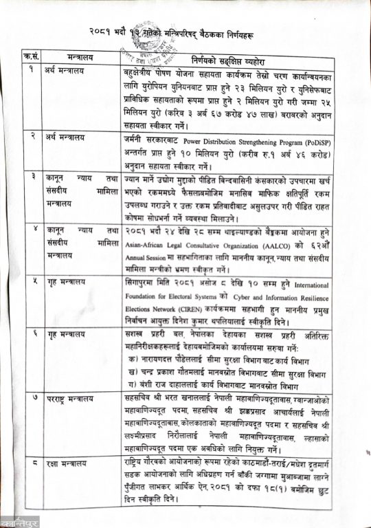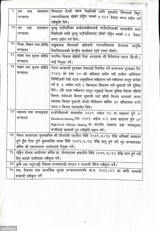 मन्त्रिपरिषद्का १८ निर्णयहरु यस्ता छन्: