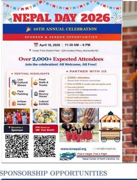 राले । नेपाल सेन्टर अफ नर्थ क्यारोलाइना (एनसीएनसी) ले प्रत्येक वर्ष आयोजना गर्दै आइरहेको ‘नेपाल परेड डे’ यसपटक अप्रिल १८, शनिबार हुने भएको छ।